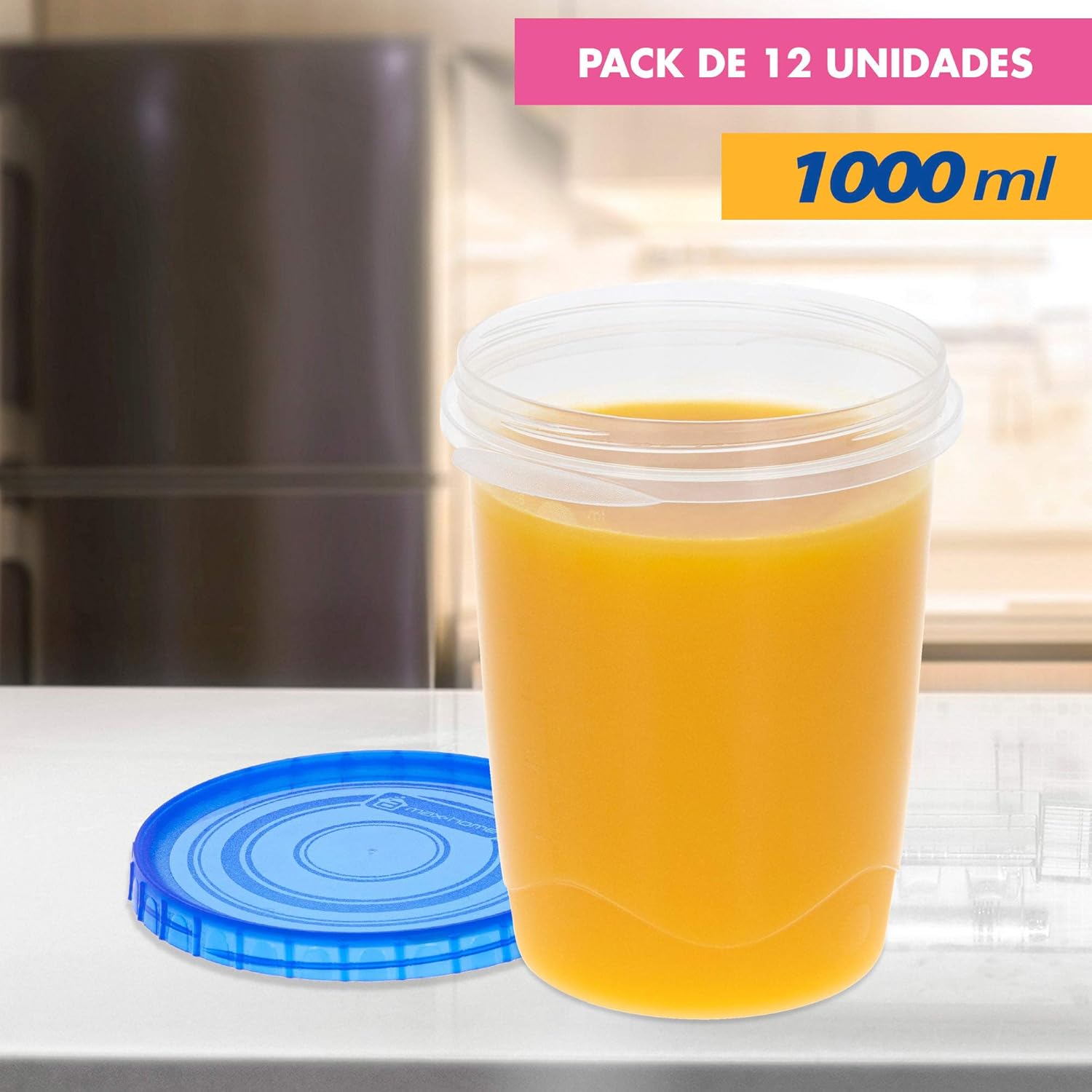 Circular shaped plastic containers for transporting or preserving liquids These plastic containers allow you to have liquid and cooked food ensuring its properties inside. At the same time, they offer ease of transporting food to the beach, to the office or for use at home. This set of containers are optimal for storing, freezing and transporting food such as pure, drinks or liquid cooked food. Durable and versatile These containers are made of plastic and are microwave safe (without lid) and dishwasher safe. In them you can store, store and transport all kinds of liquids, leftovers or prepared liquid meals with complete ease. In addition, each container fits inside the other so you can store them stacked and take up minimal space in the wardrobe. 100% leakproof. The lid of each container closes with a screw system that allows you to keep and transport liquids and drinks safely, as well as preventing air from entering, keeping food better and longer inside. Pack of 12 plastic lunch boxes This set includes 12 containers with 1.5 ml capacity and circular format for easy storage of liquid food. The measurements of each container are 12.7 x 11.5 x 14.5 cm. All units in the set have the same size and features.