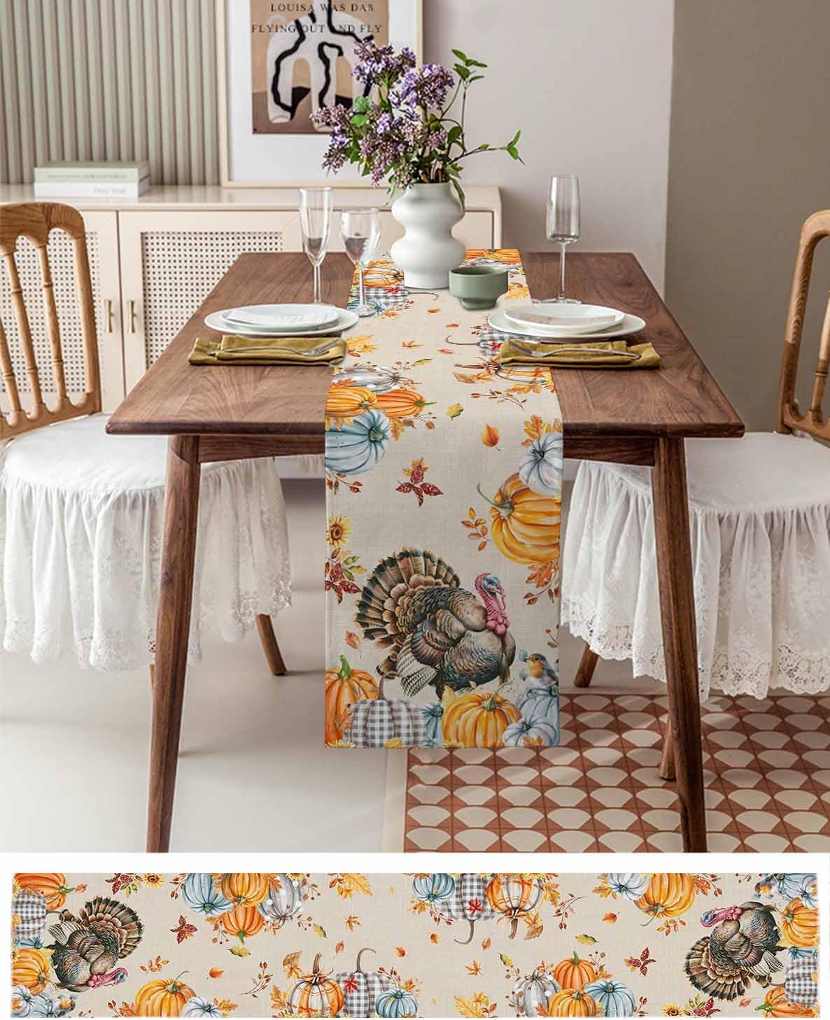 ღPremium Material- High-quality cotton and linen mixed fabric.- Soft and comfortable, feel smooth.- Durable and not easy to wear.- Environmentally friendly and reusable. ღExquisite WorkmanshipKitchen table runner is surrounded by tight edging, meticulous tailoring, clear routing, and it is not easy to get off the line.ღFarmhouse DécorFarmhouse table runners can be used for dining tables, bedroom bedside table, coffee tables, console tables, TV cabinets, kitchen island, dressing table, holiday party, wedding, end tables, etc. to illuminate any space.ღProtect The Integrity Of The Desktop- Holiday table runner fabric soft and comfortable, will not scratch the table.- Rustic table runner can avoid the hot rice hot dishes scald table when repast.- Dining table runners can avoid oil penetration the tiled tabletop.- Cotton and linen table runner protects the table from sharp objects such as knives and forks.ღUnique GiftsCoffee table runners are a good gift-giving choice. The best gift for parents, friends, lovers, colleagues and neighbors on Christmas, Halloween, Valentine's Day, Father's Day, Mother's Day, Independence Day, St. Patrick's Day, Easter, Thanksgiving Day or housewarming, anniversary, wedding, birthday party, etc.ღEasy To Care- Machine washable and hand washable, best for hand wash.- Soft cold water cycle machine wash, dry naturally.- Iron at low temperature when necessary to remove wrinkles.- Don't use bleach.ღKindly Reminder▲If stains drip on the party table runner, please clean it as soon as possible to avoid leakage due to a long time.▲Manual measurement, the size will have an error of 1-2 cm.ღSmile ServiceIf you have any questions, please don't hesitate to contact us at any time, we will reply within 24 hours.